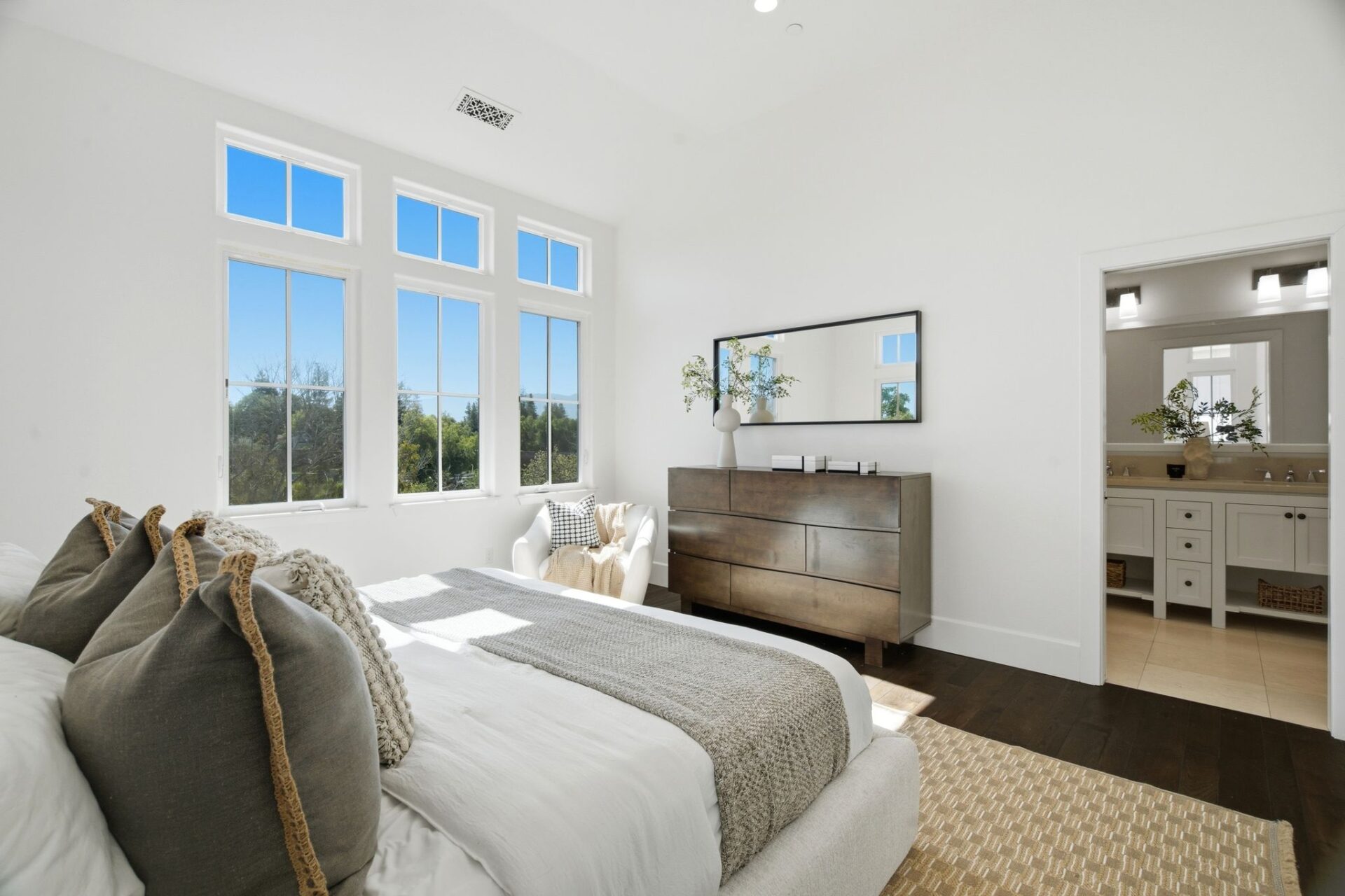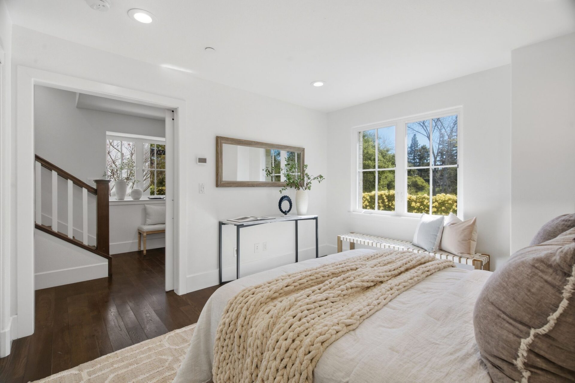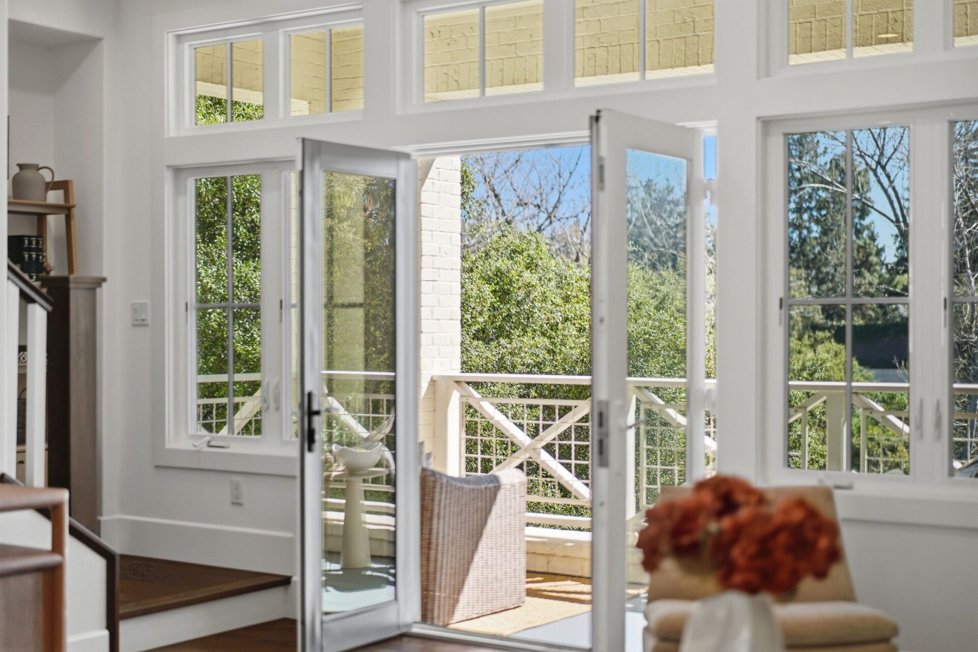 One of the home’s most special features is the large, covered balcony overlooking the Los Gatos Creek Trail, creating the perfect place to enjoy morning coffee or unwind in the evening.