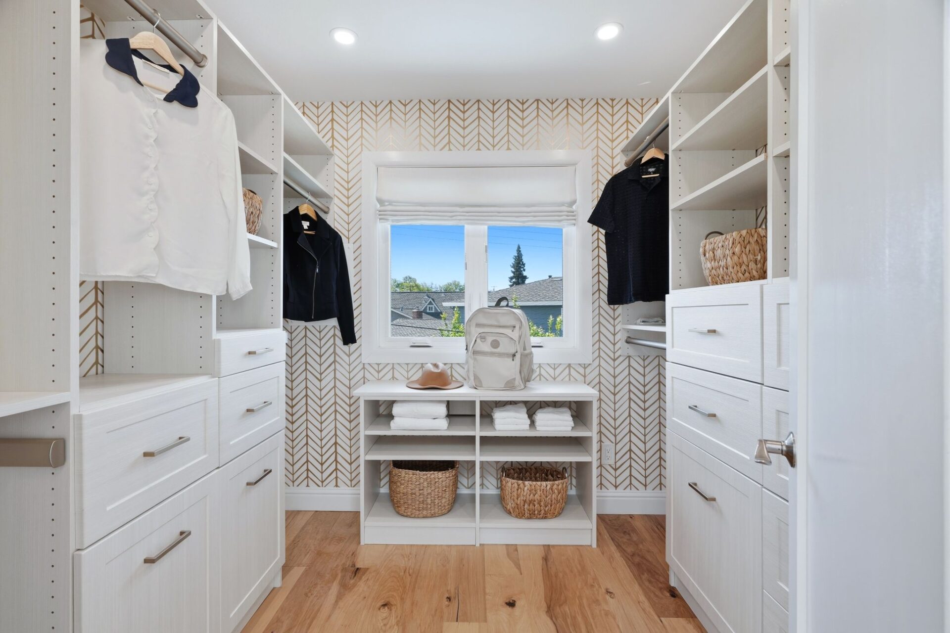 Floor-length windows grace sizable living and dining rooms, anchored by a glamorous kitchen with waterfall island, custom cabinetry, walk-in pantry, and premier appliances. A primary suite is found on each level, including an upstairs sanctuary with an office and brilliant spa bath.