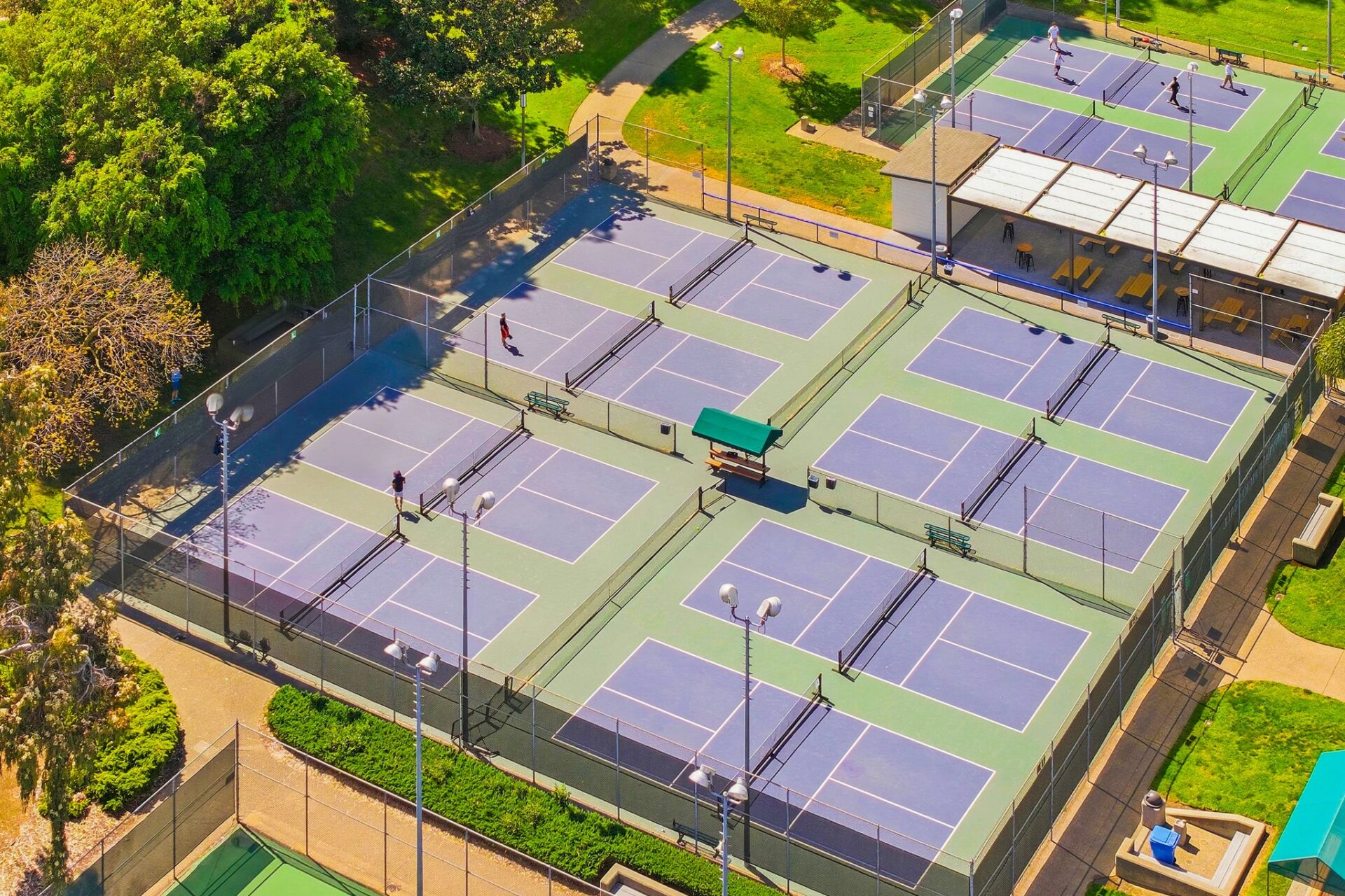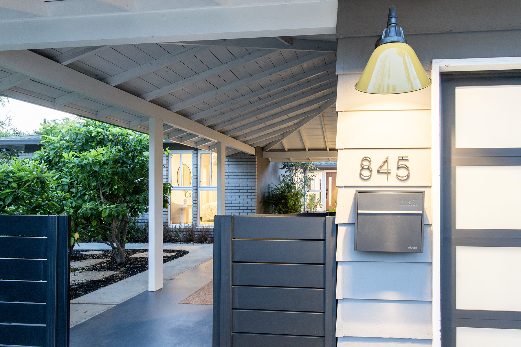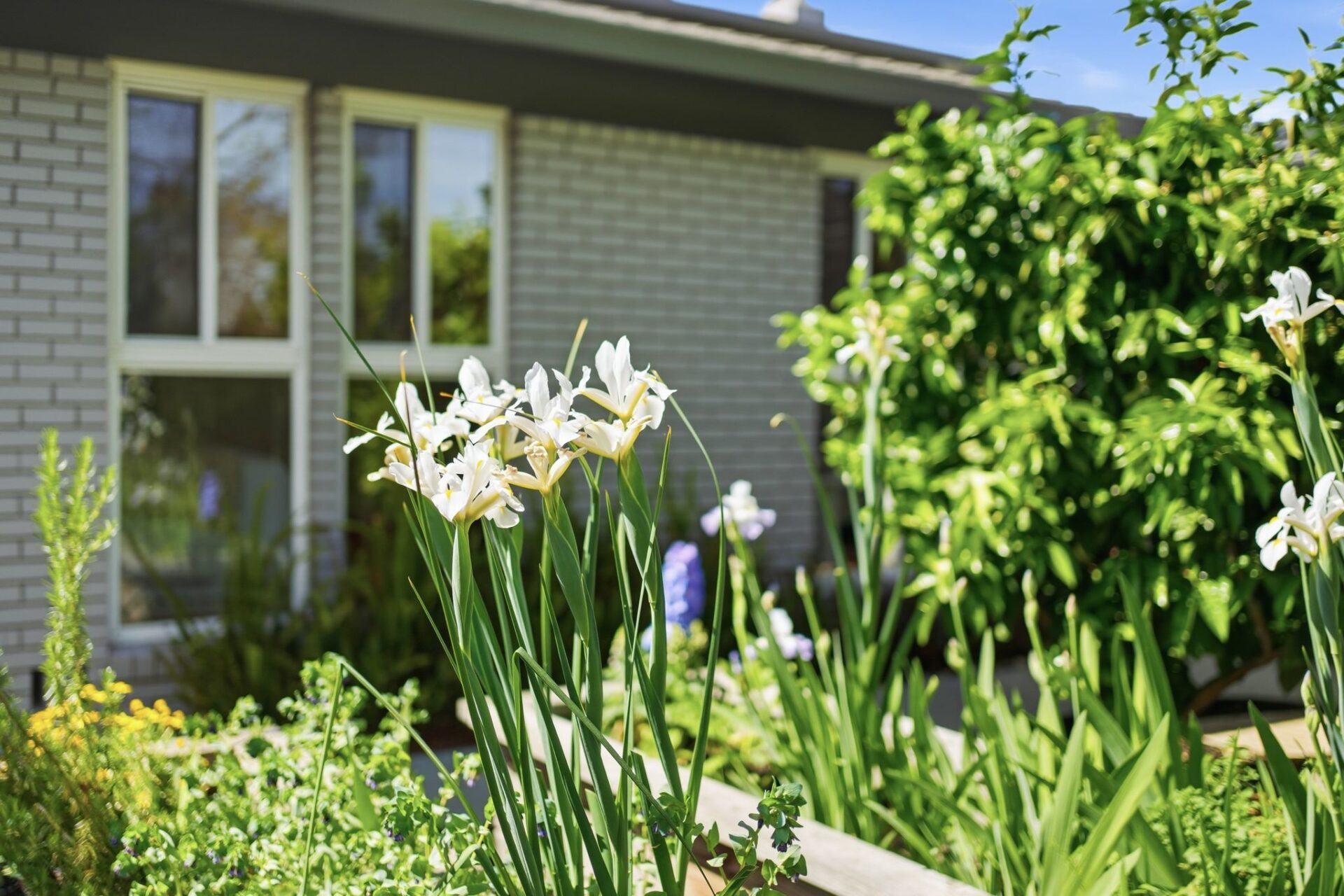 Secluded outdoor spaces offer a private leisure courtyard, freeform pool with paver terrace, and hedged edible garden with mature fruit trees.